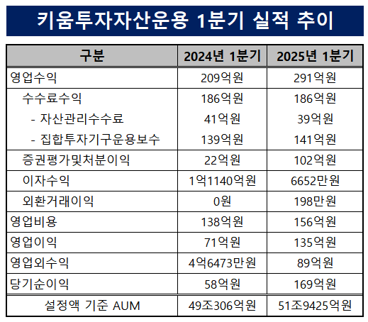키움운용 관계자는 "1분기 이익 항목을 보면 운용보수 등은 전년과 유사하지만, 자기자본투자(PI)를 통해 얻은 이익이 많이 났던 게 주요 원인"이라고 말했다.