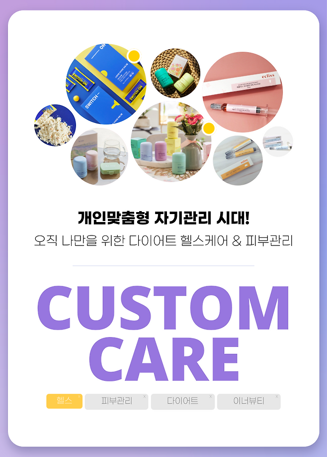 오직 나만을 위해 설계되고 맞출 수 있는 개인맞춤형 자기관리템으로 매일 더 건강하게, 예뻐져보자!