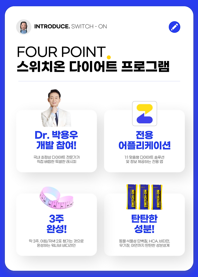 스위치온의 다이어트 프로그램은 국내 최정상 다이어트 전문가 박용우 박사가