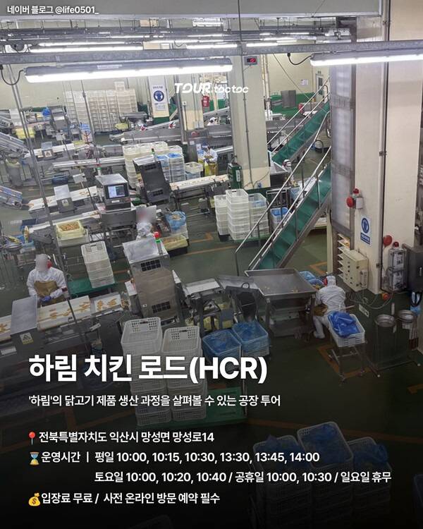 전북 익산에는 닭고기 브랜드 ‘하림’이 운영하는 이색적인 공장 투어가 있습니다. 무료 입장에 다양한 시식까지 가능한 하림의 HCR·HKR 투어 정보를 소개합니다.