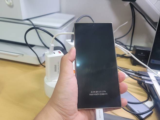 초고속 충전 잘됩니다. 그리고 문구가 딱 뜨니깐 빨리 충전되겠구나 생각이 듭니다.