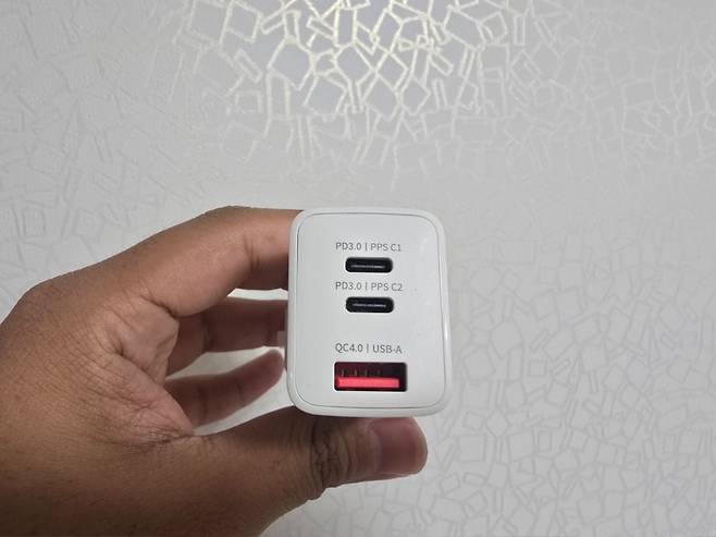카드 크기이기도 하고 위에서 고속 충전기지만 정말 작습니다. 멀티탭 공간도 적게 차지합니다. 무게는 110g으로 휴대성도 좋아요. 저는 평소에 가방에 넣고 사용하고 있습니다.