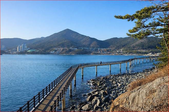 바다를 따라 이어지는 데크길은 발걸음에 부담이 적고, 중간중간 쉬어 갈 수 있는 쉼터와 정자가 자연스럽게 배치돼 있습니다. 해송 사이로 바다가 보이는 구간에서는 숲길을 걷는 듯하다가도, 갑자기 시야가 트이며 바다 풍경이 펼쳐져 또 다른 리듬을 만들어냅니다.
