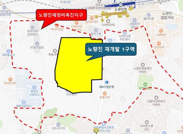 노량진 뉴타운 사업 중 최대어로 꼽히는 1구역은 속도가 가장 더디다. 뉴타운 부지 중 서울지하철 1호선, 9호선과 가장 가깝고, 2992가구 예정으로 규모가 가장 크기 때문에 ‘노른자’라는 평가를 받고 있다. 그러나 시공사 선정이 늦어지며 사업 진행도 지연됐다.