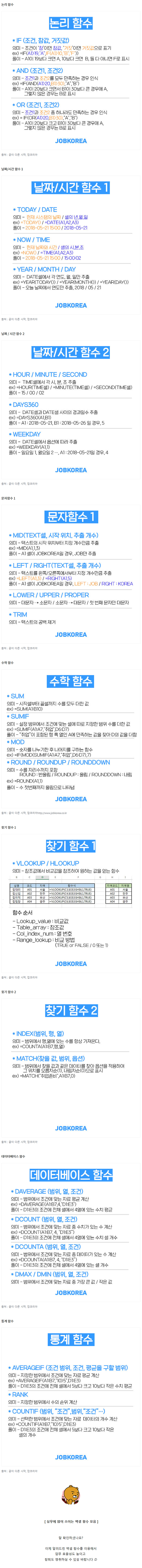 아래는 각 분야별 실무에서 자주 사용하는 함수를 정리한 것입니다.