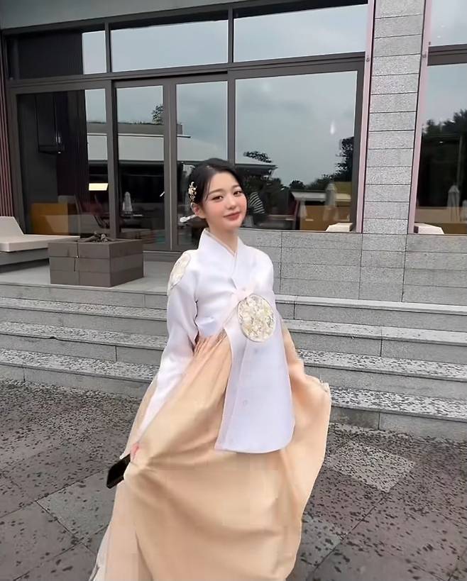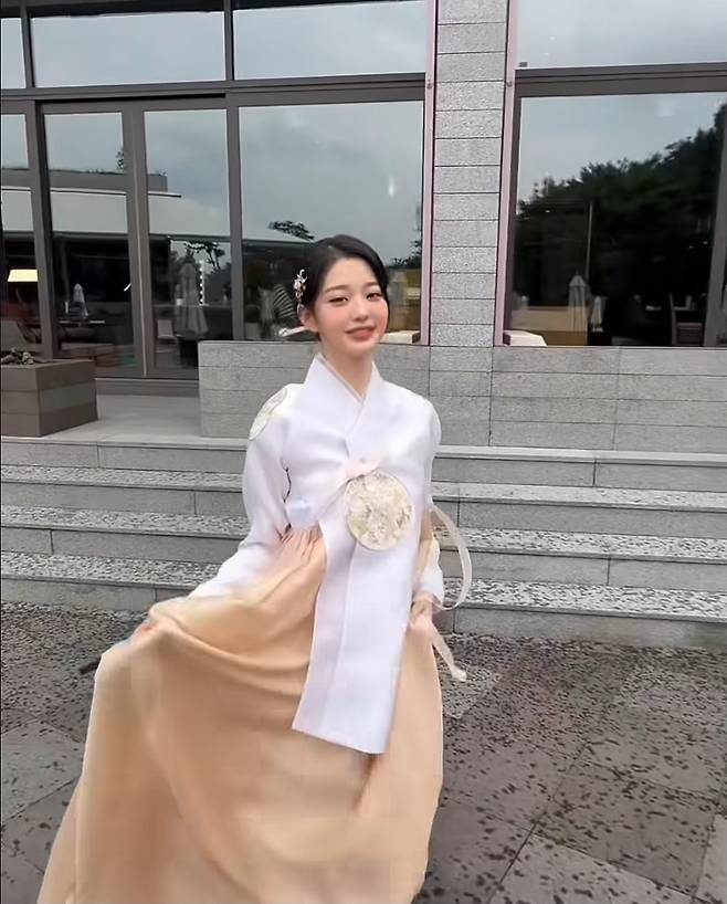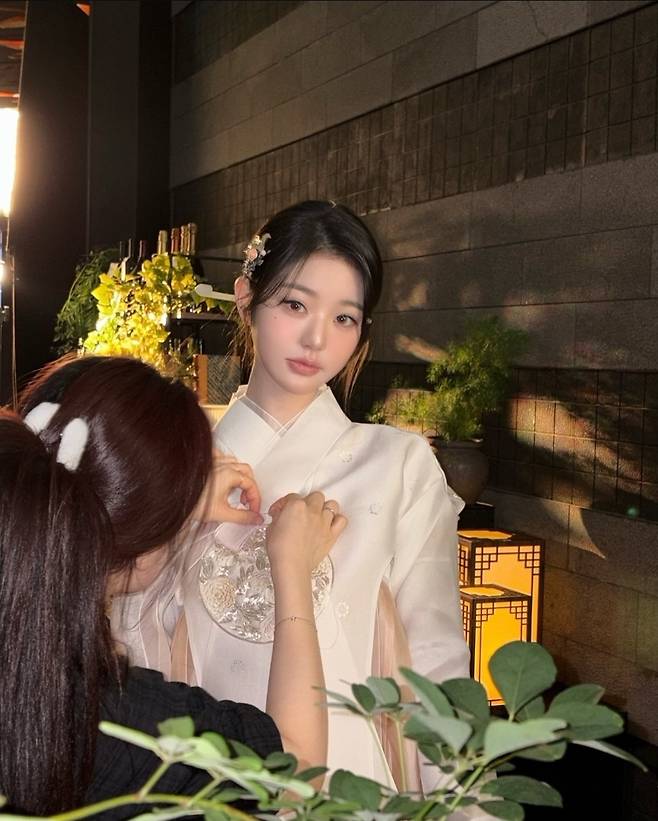 길게 내려오는 고름과 풍성하게 퍼지는 치마 실루엣은 장원영 특유의 긴 팔다리와 잘 어우러지며 고전미와 우아한 감각을 동시에 전달했습니다.
