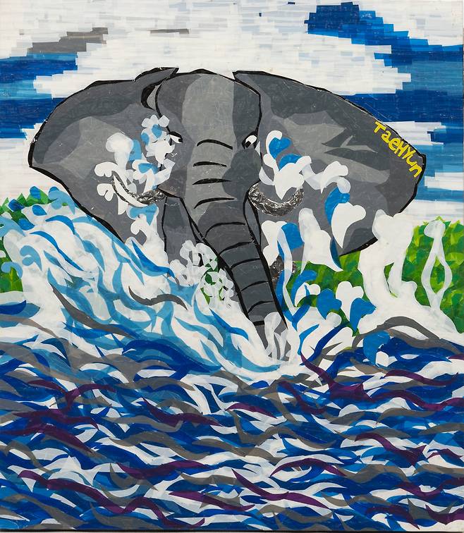 박태현 작가가 지닌 특별한 능력의 발원지도 윌버의 개념에서 풀어보는 것은 어떨까 생각해 봤다. 형태를 안에서 채워가다가 바깥에서 마무리하는 것, 먼저 면을 채워서 선을 이끌어 내는 것, 상대와 일상의 대화가 제한적인 그가 대상의 특징을 콕 집어내 그림으로, 그것도 테이프로 표현해 낸다는 것은 상식적인 범주를 벗어난 그가 지닌 능력이다. 그의 작품이 지닌 수수께끼를 몸의 눈-> 마음의 눈-> 영의 눈이라는 세 개의 우물에서 풀어보고자 하는 까닭이다.