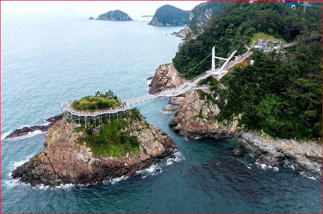 부산 서구 암남공원과 동섬을 연결하는 송도용궁구름다리는 2020년, 약 18년 만에 다시 재건된 구름다리입니다. 과거 태풍 셀마로 철거되었던 이 다리는, 그 아쉬움을 딛고 더욱 탄탄한 구조와 아름다운 경관을 갖춰 돌아왔습니다. 길이 127m, 폭 2m의 이 다리는 해수면으로부터 최대 25m 위에 설치되어 있어, 걸을 때마다 바다 위를 부유하는 듯한 감각을 선사합니다. 걷는 내내 발아래로 펼쳐지는 쪽빛 바다, 그리고 암남공원과 거북섬의 기암절벽은 보는 이의 감탄을 자아냅니다. 날이 맑은 날엔 일본 대마도까지 조망된다고 하니, 탁 트인 경치에 더욱 감동하게 됩니다.