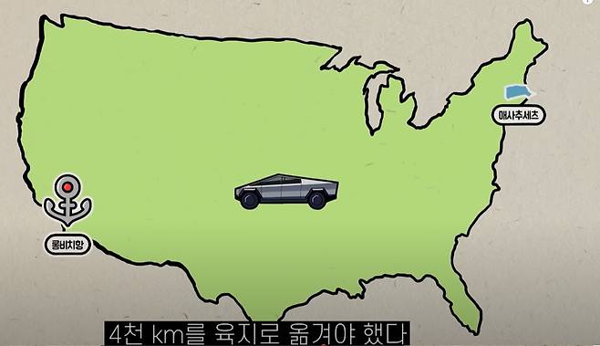 차량 소유주는 미국 동부 매사추세츠에 거주했고, 트럭은 육로로 4000km를 달려 미국 서부로 옮겨진 뒤 LA 항구에서 또 배를 타고 태평양을 횡단하는 과정을 거쳤다.