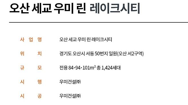 대표적인 신규 공급 단지로는 우미건설이 오산시 서2구역에 조성하는 ‘오산 세교 우미린 레이크시티’가 있다. 해당 단지는 오는 9월 중 분양에 나설 예정으로 전용 84㎡ 이상 중대형 평형으로만 구성된 점이 특징이다.