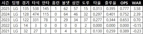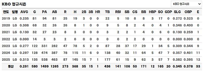 #LG 신민재의 통산 기록