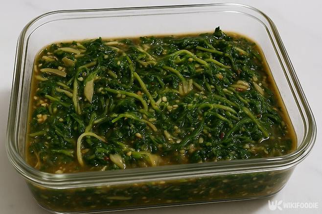 돌나물 자체는 열을 가하지 않아야 아삭한 식감이 유지된다. 끓인 양념장을 그대로 식혀 붓는 방식이므로 채소의 숨이 죽지 않으며, 시간이 지날수록 조미액이 스며들며 깊은 맛이 배어난다.