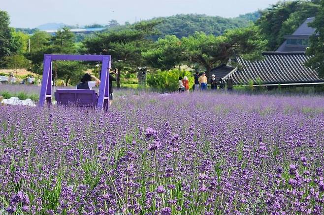 정원에는 다양한 포토존이 설치돼 있어, 보는 재미와 찍는 즐거움이 공존한다. 라벤더를 배경으로 한 감성적인 나무 벤치, 아치형 조형물, 전통적인 정자형 쉼터까지. SNS에 공유하면 감탄 댓글이 줄줄이 달릴 법한 비주얼이다.