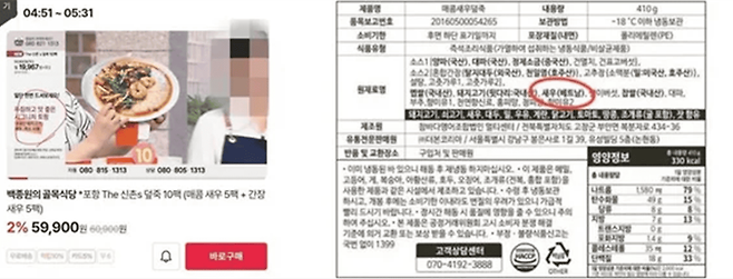 해당 제품 설명에는 '국내산 다시마, 새우, 멸치를 사용해 만든 비법 육수'와 '덮죽 토핑의 화룡점정 자연산 새우'라는 문구가 포함되어 있었지만, 실제 제품 원재료에는 '베트남산' 새우가 사용된 것으로 나타났습니다. 고발인은 "베트남산 흰다리새우는 대부분 양식 원료인데, 이를 자연산으로 표기한 것은 소비자를 속이는 행위"라며 비판했습니다.