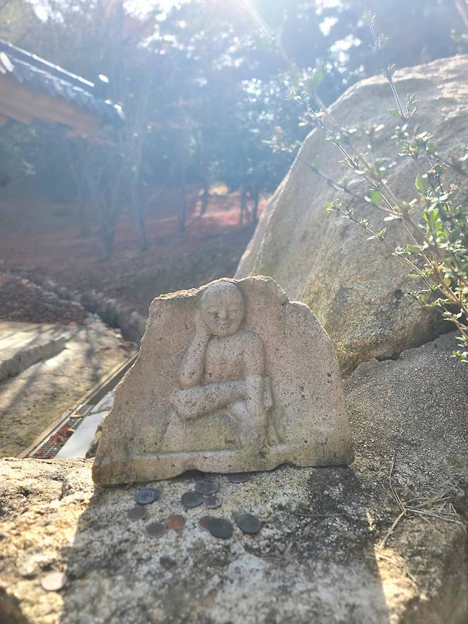 마지막 날 찾아간 옥룡암도 잊히지 않는다. 빨간 단풍잎이 융단처럼 수북하게 쌓인 암자. 계곡물만 조용히 흐르고 경내는 작은 인기척도 없이 고요했다. 스님의 솜씨인지 자그마한 돌부처 머리 위에는 뜨개 모자가 씌워져 있었다. 유독 깨진 면이 많은 아담한 크기의 석탑도 푸근하고 정겨웠다.
