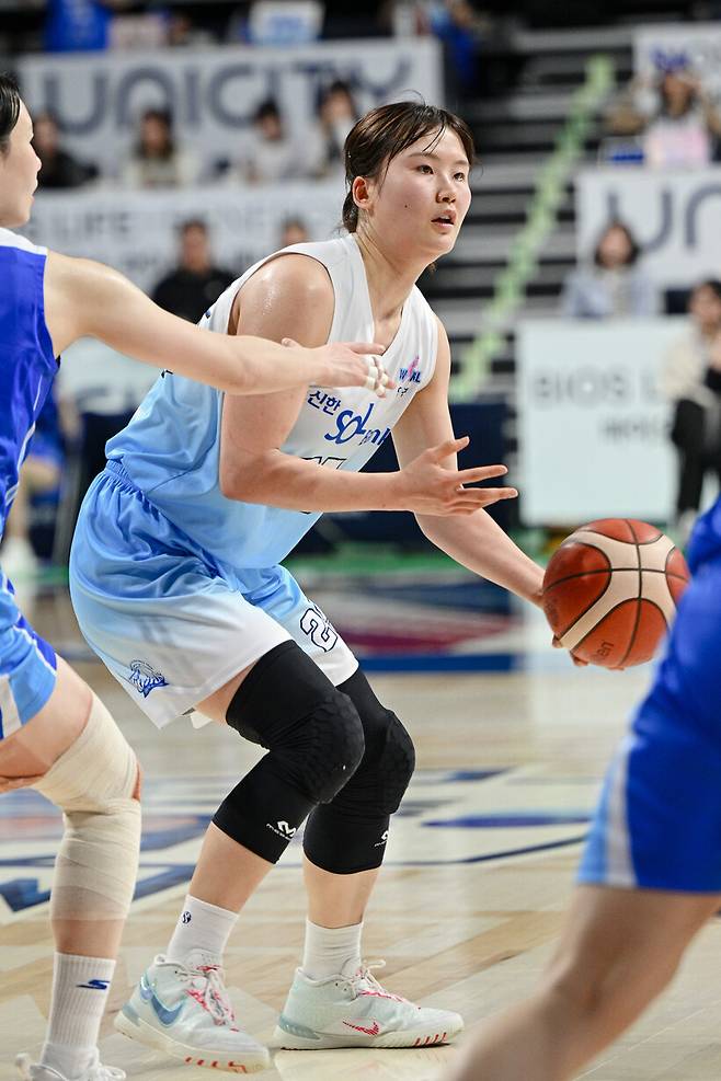 인천 신한은행 미마 루이는 28일 아산 이순신체육관에서 펼쳐진 BNK금융 2025~2026 여자프로농구 아산 우리은행과의 경기에서 30분 58초 동안 16점 10리바운드 2스틸을 기록했다.