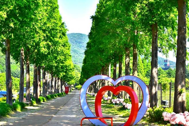 이 숲길은 온천지구와 연결돼 있어 찾기도 쉽다. 입구에는 상징처럼 자리한 빨간 우체통이 있어 누구든 쉽게 포인트를 확인할 수 있다. 길 양옆으로는 메타세쿼이아가 쭉 뻗어 서 있고, 그 아래를 걷는 순간 마치 영화 속 장면처럼 나무터널을 통과하는 기분이 든다.