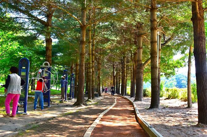 숲길을 따라 걷다 보면 자연스럽게 벤치와 쉼터를 만나게 된다. 앉아서 쉬어갈 수 있는 이 공간은 단순한 휴식처를 넘어 숲 속에서 조용히 머물 수 있는 자연형 힐링 존이다. 특히 조명 시설이 갖춰져 있어 야간 산책도 가능하며, 저녁 무렵에는 더 조용하고 아늑한 분위기를 느낄 수 있다.