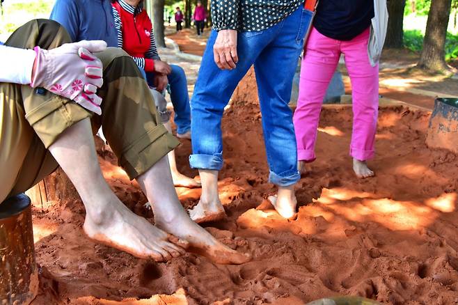 이 길의 매력은 끝에서 더 강하게 드러난다. 산책로 마지막 구간에서는 스트로브 잣나무 숲과 함께 맨발로 걸을 수 있는 황톳길이 기다리고 있다. 황토 특유의 부드러운 촉감과 미세한 자극은 발바닥의 피로를 풀어주며, 혈액순환을 돕는 건강 효과도 기대할 수 있다. 실제로 많은 방문객이 이곳에서 신발을 벗고 걷는 짧은 시간 동안 몸과 마음의 이완감을 체감했다고 말한다.