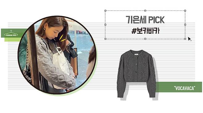 크롭한 기장감과 함께 꽈배기 디자인 가디건은