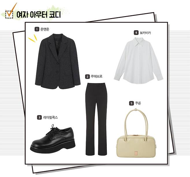 오버핏 아우터와 함께 오피스룩으로 코디해보았어요