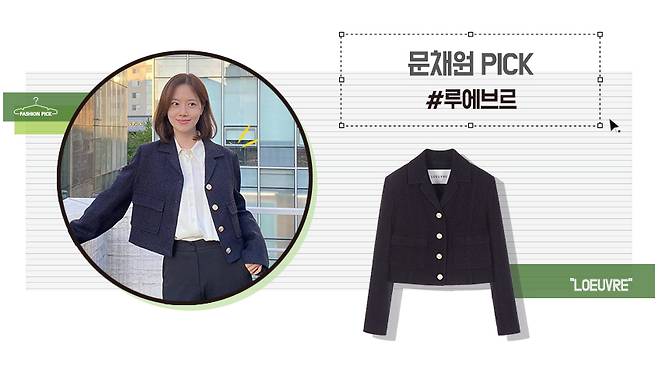 문채원씨는 네이비색의 트위드 크롭 자켓을 착용해주셨어요
