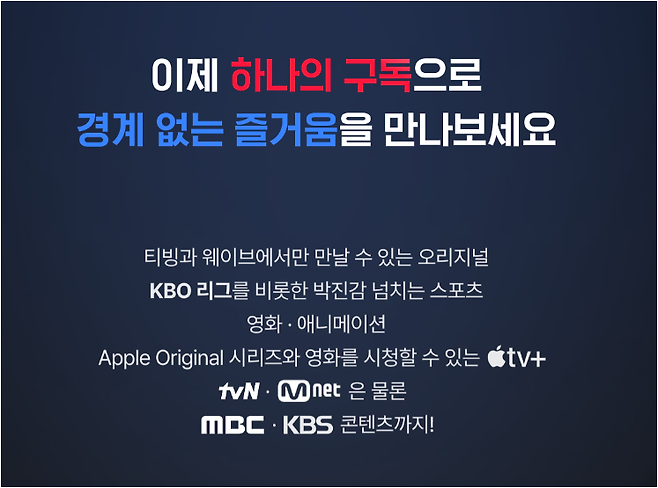 OTT ์์ฅ์ ๊ฑฐ๋ํ ๋ณํ๊ฐ ์์๋์ด์. ํฐ๋น๊ณผ ์จ์ด๋ธ, ๋ ํ๋ซํผ์ด ํ๋๋ก ํตํฉ๋ ์ค๋น๋ฅผ ํ๊ณ ์์ต๋๋ค. 2025๋ 6์ 10์ผ, ๊ณต์ ๊ฑฐ๋์์ํ๊ฐ ์กฐ๊ฑด๋ถ๋ก ํฉ๋ณ์ ์น์ธํ๊ณ , ์ด์ ๋ณธ๊ฒฉ์ ์ธ ํตํฉ ์ ์ฐจ๊ฐ ์์๋ ๊ฑฐ์ฃ .