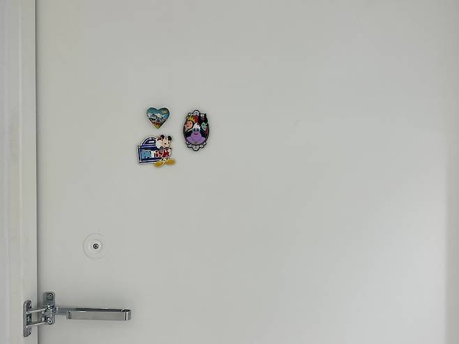현관에는 스위스와 파리로 신혼여행 다녀오면서 사온 마그넷들을 붙였어요. 남편과 연애시절 여기저기 여행을 많이 다녔는데 그동안은 기념품 산 적이 없었습니다. 그치만 결혼하고 나니 여행 추억할 겸 신혼집에 기념품 모아도 좋을 것 같더라구요. 앞으로 더 채워질 현관이 기대돼요!