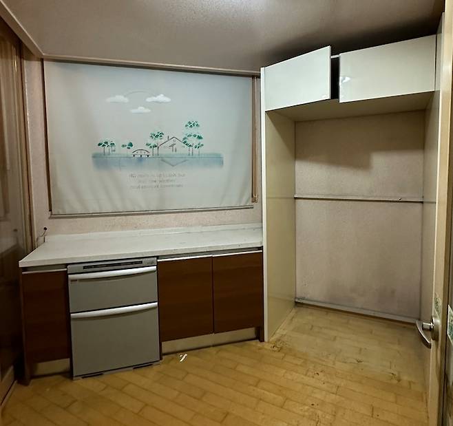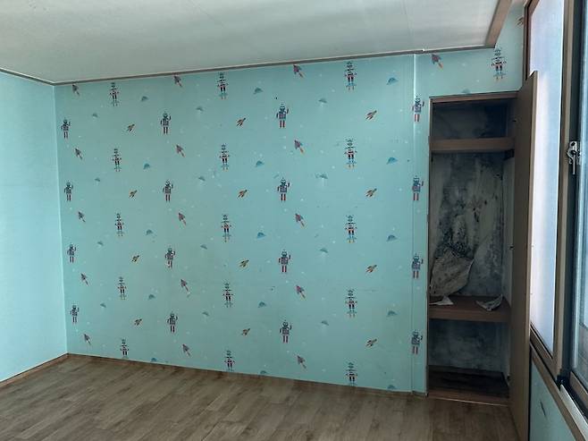 창문을 기준으로 양쪽에 붙박이장이 있었는데 내부 곰팡이가 많이 슬어 있었어요.