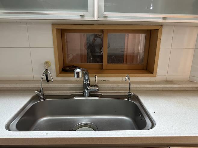 싱크대는 키 160cm인 제게도 높이가 너무 낮게 느껴졌고, 창문은 야외가 아닌 보일러실을 비추고 있어서 의미가 없어 보였어요.