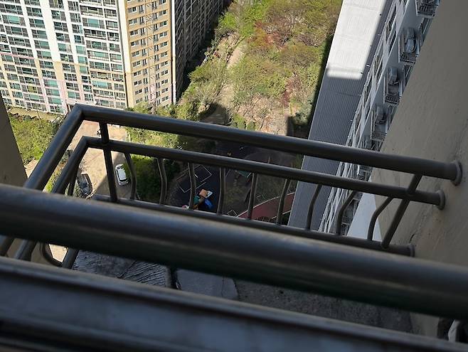 정면에 보이는 창에는 에어컨 실외기를 두고 블라인드로 시야를 차단했어요.