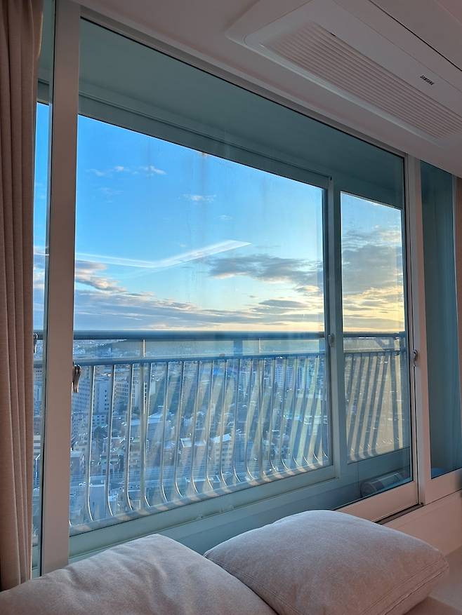 저희 집은 아파트 입구 쪽에 위치하고 고층이라서 시야를 방해하는 건물들이 없어요. 덕분에 날씨 좋은 낮에는 햇빛이 쫙 들고, 밤에는 야경이 쫙 보이는 뷰를 감상할 수 있게 됐습니다 :-)
