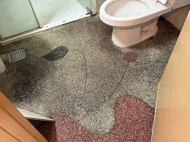 욕실 바닥은 콩자갈 이라는 자갈돌 시공이 되어 있었는데요. 여기 뿐 아니라 베란다, 안방 욕실 등에도 콩자갈 시공이 되어 있어 철거하는 데 비용도 많이 들고 애 먹었답니다.