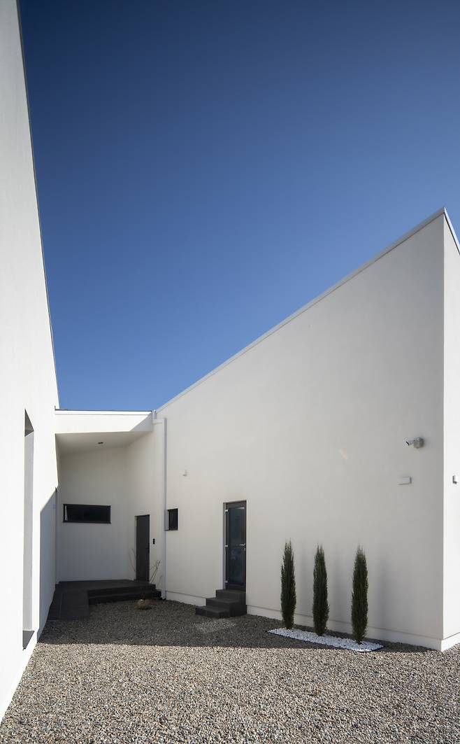 집을 설계하며 늘 기능의 효율성에 기반하지 않을 수 없다. 특히, 일상적인 주택의 경우에는 삶의 다양한 모습을 담기 위해 더욱 그렇다. 그러다 보면 집을 구성하는 기능들이 복잡해지고 그만큼 많은 수납공간을 활용하고자 애를 쓰기 마련이다. 전원주택의 건축주는 내외부를 넘나드는 마당에 대한 로망이 있기에 빈 외부공간에 대해서 많이 고민하기도 한다.