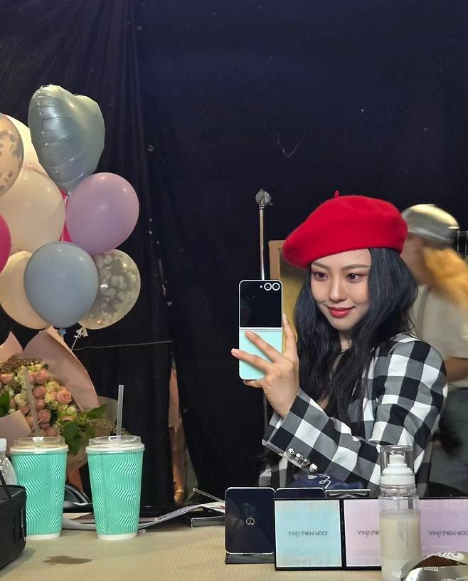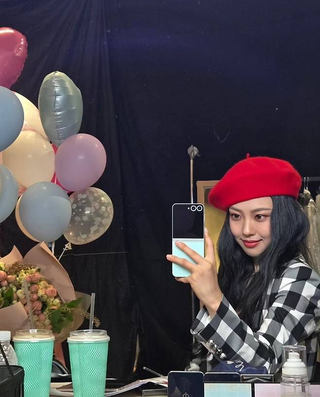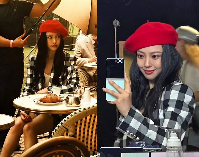 또 고민시는 포인트로 빨간 베레모를 착용해 얼굴을 한층 더 밝고 생기 있게 만들어 생동감 있는 패션 센스를 자랑했습니다.