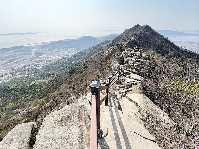 바위 능선이 주는 역동적인 풍경 참성단으로 향하는 길목에서 만나는 칠선녀계단과 칠선교, 그리고 거친 바위 능선은 산행의 지루함을 덜어주는 시각적 즐거움입니다. 특히 2월의 맑은 날에는 시야가 탁 트여 인천대교와 송도국제도시의 마천루까지 선명하게 조망할 수 있어, 도심과 자연이 공존하는 경이로운 장면을 포착할 수 있습니다.
