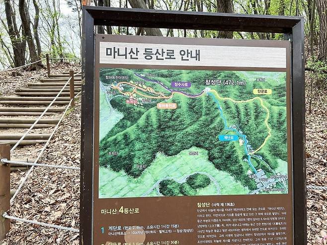 주차 정보: 마니산 입구 주차장 (무료)