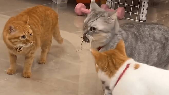 다른 고양이들은 그저 멍하니 서서 눈을 동그랗게 뜨고 어리둥절한 모습이 주인에게 큰 웃음을 주었습니다!
