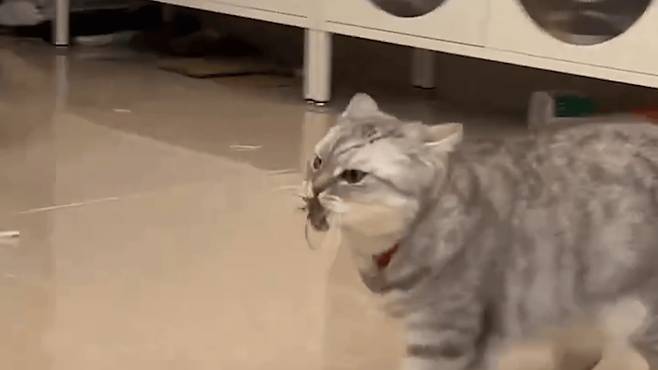 집에서 한가롭게 쉬던 주인이 갑자기 들리는 '윙윙' 소리에 깜짝 놀랐습니다. '도대체 이게 뭔 소리지?' 하고 의아해하며 소리의 근원을 찾아보니, 어이구, 집사가 키우는 고양이가 구석에서 매미 한 마리를 사냥해 물고 있었네요!
