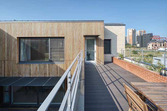 2층 테라스는 안쪽 깊숙한 곳에 사용공간을 만들고 도로와 마주보는 쪽에는 텃밭을 조성해 사생활 보호를 확보했다. 텃밭 딸린 열린 테라스는 기분과 상황에 따라 외부공간을 이용할 수 있도록 한 것이 특징이다. 도로에 면한 이 테라스에는 햇빛 좋은 날 큰 빨래를 널 수 있는 빨래걸이도 있다. 덕분에 현재 새솔동 단독주택Ⅱ를 계획하고 있다.