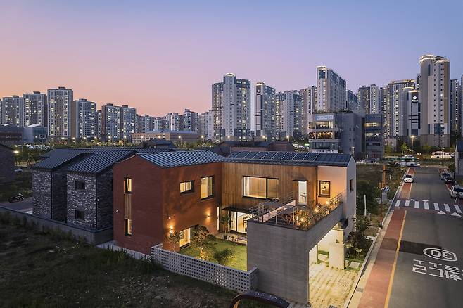 모든 실들은 남향인 마당에 마주보게 배치했다. 햇살과 변화하는 자연을 조망하면서, 시각적 변화가 주는 공간 경험이 일상의 즐거움이 될 수 있기를 바랐다. 공간과 공간 사이를 지나며 마당에서 자연의 변화를 느끼고, 빛과 그림자로 시간의 변화를 느끼고, 바람을 맞으며 하늘과 별을 바라보는 것이 이 집이 주는 일상적 즐거움이 아닐까 생각했다.