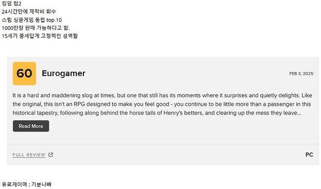 킹덤컴에 70점 이하의 점수를 준 웹진들은