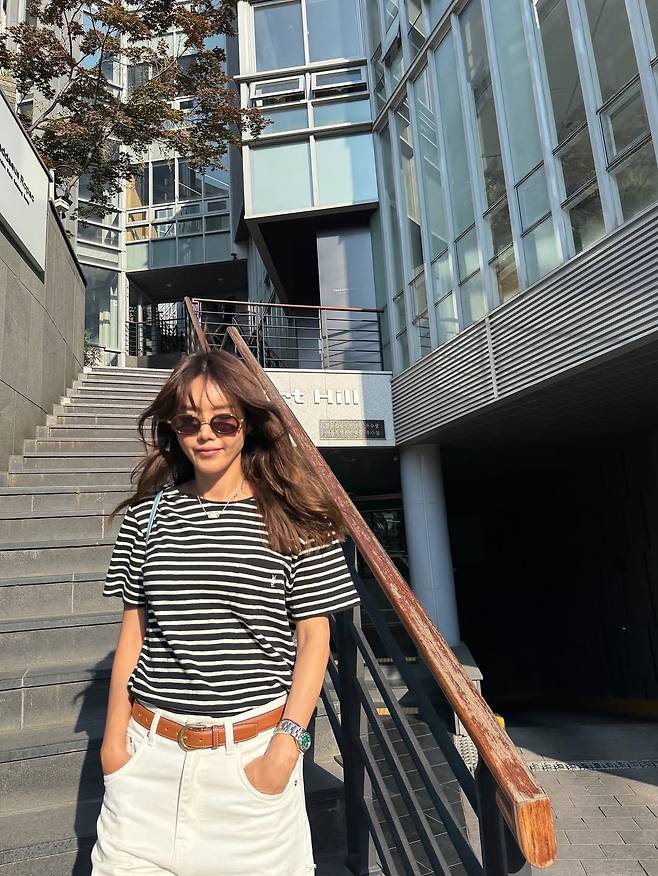 군더더기 없이 정돈된 스타일링 위로 내려앉은 선글라스와 내추럴 웨이브 헤어는 편안하면서도 도시적인 분위기를 더했고, 무엇보다도 20대라고 해도 믿을 만큼 동안 미모와 탄탄한 체형이 감탄을 자아낸다.