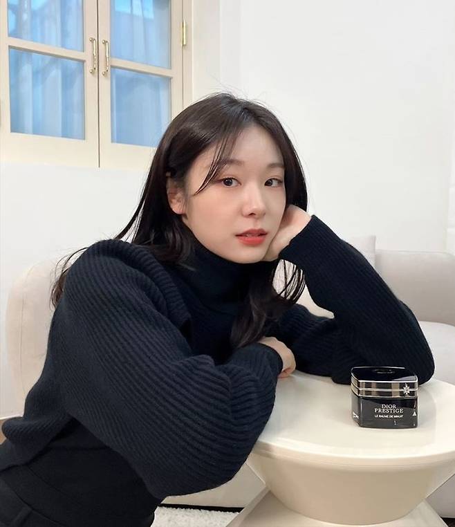 공개된 사진 속 김연아는 도톰한 골지 터틀넥 니트룩으로 카메라를 응시하며 일상속 꾸안꾸 매력을 발산했다.