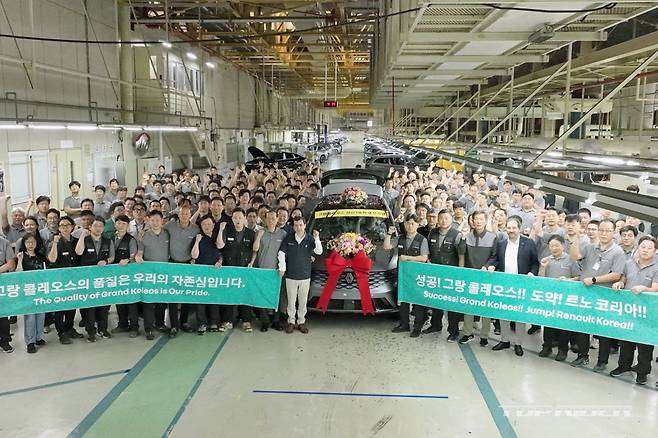 르노코리아는 그랑 콜레오스 15일부터 양산을 시작했다고 16일 밝혔다. 그랑 콜레오스는 부산 공장에서 생산되는 르노코리아의 차세대 D 세그먼트 SUV로 가솔린 터보와 하이브리드, 국내 최초의 조수석 디스플레이 등을 탑재했다. 올해 3분기 중 출시되며, 가격은 미정이다.