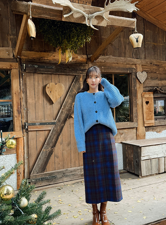 그녀가 입은 온앤온 헤비 나그랑 가디건은 캐주얼하면서도 멋스러운 디자인으로 도톰한 립 짜임으로 보온성을 더했고, 볼륨 있는 소매와 여유롭게 떨어지는 밑단이 편안함을 선사합니다.