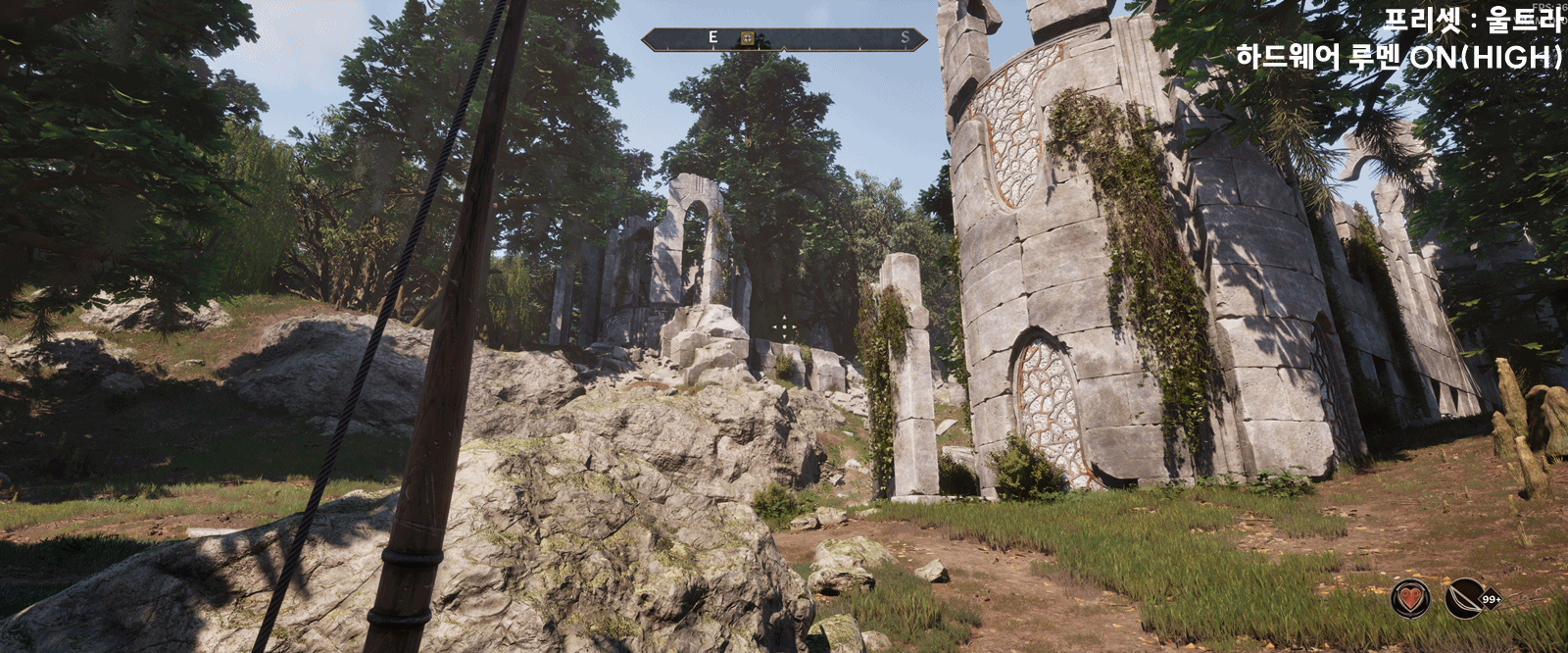 또 하드웨어 루멘을 사용하지 않아도 게임의 분위기가 망가지거나 몰입감이 깨지지 않기 때문에, 이 옵션에 미련을 갖기 보다는 원활한 프레임을 확보하는 것이 훨씬 만족도가 높습니다.