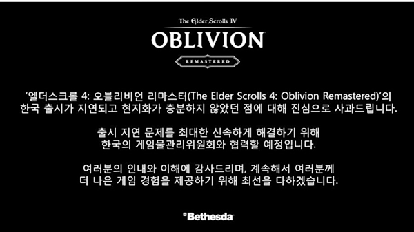 게임 제작사와 배급사가 국내 사정에 무지해서 <오블리비언 리마스터>의 연령 등급을 18세가 아니라 15세로 신청했다가 뒤늦게 정정하고 고치는 과정에서 출시가 밀리고 지역락까지 걸렸다고 하는데요. 현재는 국내 게임 유통 전문 기업 H2인터랙티브를 통해 등급 심의를 대행하는 중인 것으로 알려졌습니다.