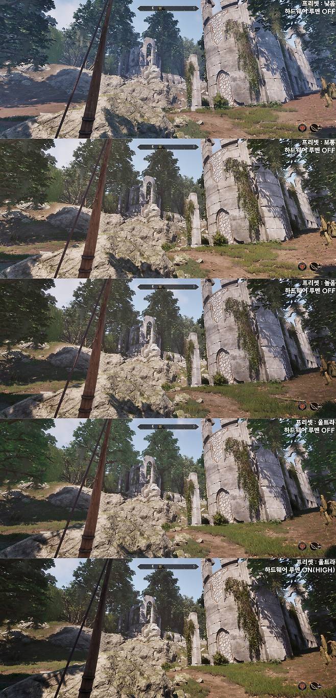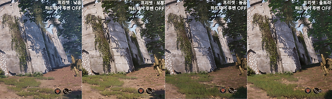 전체적인 느낌은 최하옵(낮음)과 풀옵션(울트라)의 차이가 크지 않다