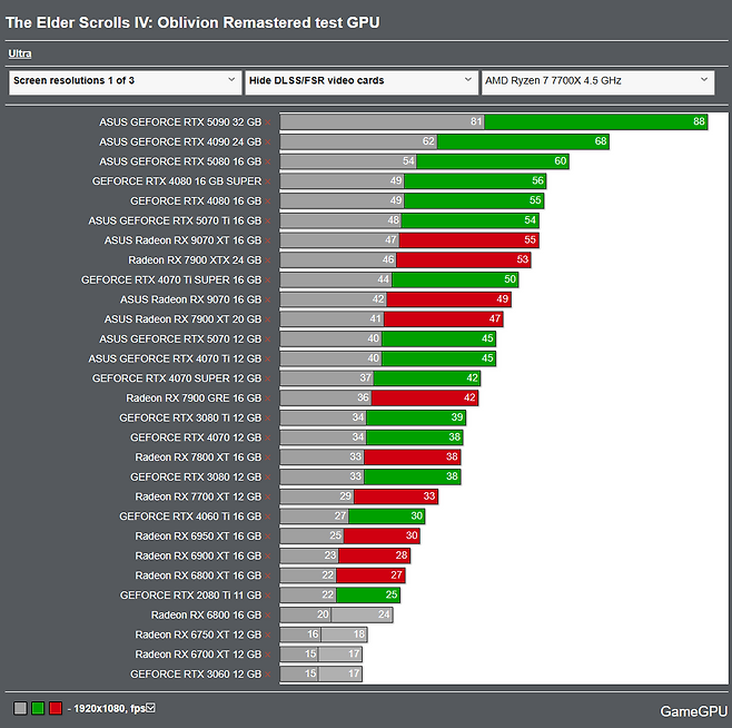 <오블리비언 리마스터>는 개발사가 최소/권장 사양만 공개했기 때문에 최고 사양은 제가 직접 게임을 구동해서 테스트 해보고, 해외의 주요 벤치마크들도 모두 참고했습니다. CPU보다는 그래픽카드가 중요한데 풀옵션 또는 풀옵션에 가까운 상태로 플레이 하려면 현 시점 최고 수준의 그래픽카드가 요구됩니다.